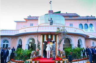 जयपुर राजस्थान के मुख्यमंत्री भजनलाल शर्मा ने 77वें गणतंत्र दिवस के अवसर पर सोमवार सुबह यहां मुख्यमंत्री निवास पर राष्ट्रीय ध्वज फहराया।इस दौरान मुख्यमंत्री को कंपनी कमांडर राजेंद्र शर्मा के नेतृत्व में आरएसी की टुकड़ी ने सलामी दी।