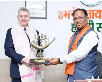 रायपुर। मुख्यमंत्री विष्णु देव साय से सोमवार को राजधानी रायपुर स्थित मुख्यमंत्री निवास में ऑस्ट्रेलिया के महावाणिज्य दूत बर्नार्ड लिंच ने सौजन्य मुलाकात की। साय ने राज्य में चल रही विकास योजनाओं, विशेष रूप से आदिवासी और ग्रामीण क्षेत्रों में स्वास्थ्य, पेयजल एवं पोषण सुधार के प्रयासों की जानकारी साझा की। उन्होंने बताया कि छत्तीसगढ़ सरकार इन क्षेत्रों में तेजी से काम कर रही है और अंतरराष्ट्रीय सहयोग से इन योजनाओं को और प्रभावी बनाया जा सकता है।