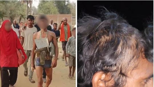 अंबिकापुर: सूरजपुर जिले के रामानुजनगर थाना क्षेत्र के पस्ता गांव में चोरी के संदेह में एक युवक के साथ अमानवीय व्यवहार का मामला सामने आया है। ग्रामीणों ने युवक का आधा सिर मुंडवाकर उसके गले में जूते-चप्पलों की माला पहनाई और उसके साथ मारपीट की। इतना ही नहीं, उसे अर्धनग्न अवस्था में उसकी पत्नी के साथ पूरे गांव में घुमाया गया।