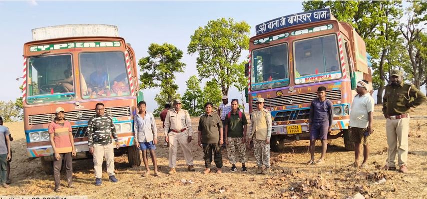 जंगल में अवैध बोरवेल खनन पर वन विभाग की सख्ती, दो ट्रक जब्त