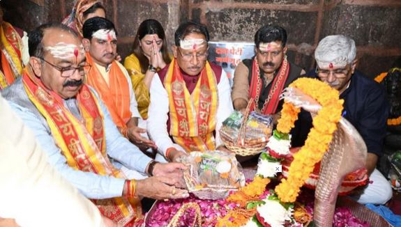 रायपुर। नववर्ष के प्रथम दिवस पर मुख्यमंत्री विष्णुदेव साय और केंद्रीय पर्यटन एवं संस्कृति मंत्री गजेंद्र सिंह शेखावत ने कबीरधाम जिले के ऐतिहासिक भोरमदेव मंदिर पहुंचकर पूजा अर्चना की। उन्होंने मंदिर के गर्भगृह में विधिवत पूजा-अर्चना एवं आरती कर प्रदेश की सुख-समृद्धि, खुशहाली और जनकल्याण की कामना की।