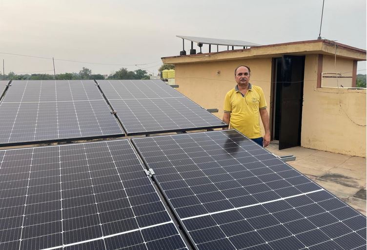 घर की छत पर बन रही बिजली से कोनी निवासी श्री सागर चौधरी का बिल हुआ आधा